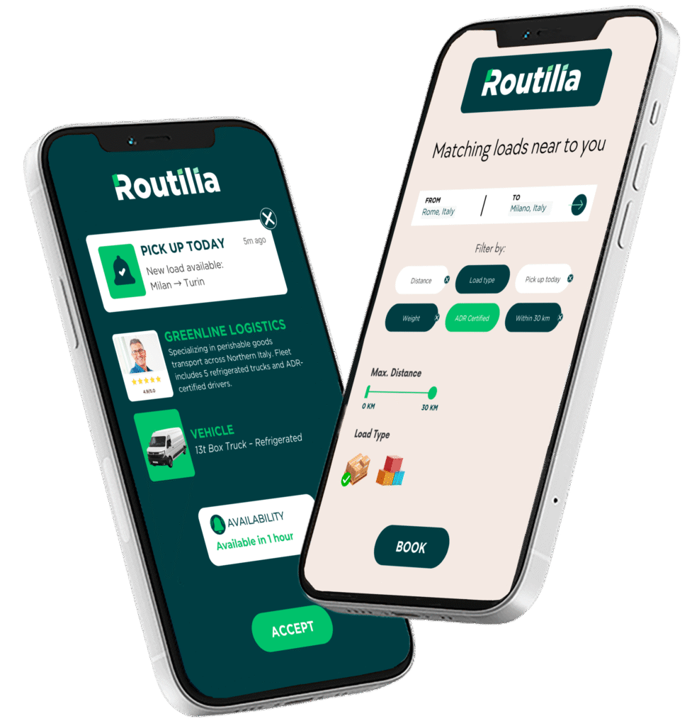 No more endless phone calls or spreadsheets. With Routilia, carriers receive real-time load offers tailored to their location, capacity, and preferences. Shippers, on the other hand, get immediate access to vetted, available transport options—no delays, no uncertainty. The system learns over time, improving its suggestions with every shipment.